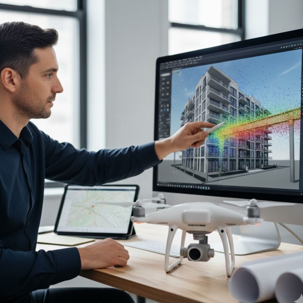 Generamos nubes de puntos y modelos tridimensionales precisos de edificaciones y terrenos, esenciales para la planificación, el análisis y la monitorización de proyectos.