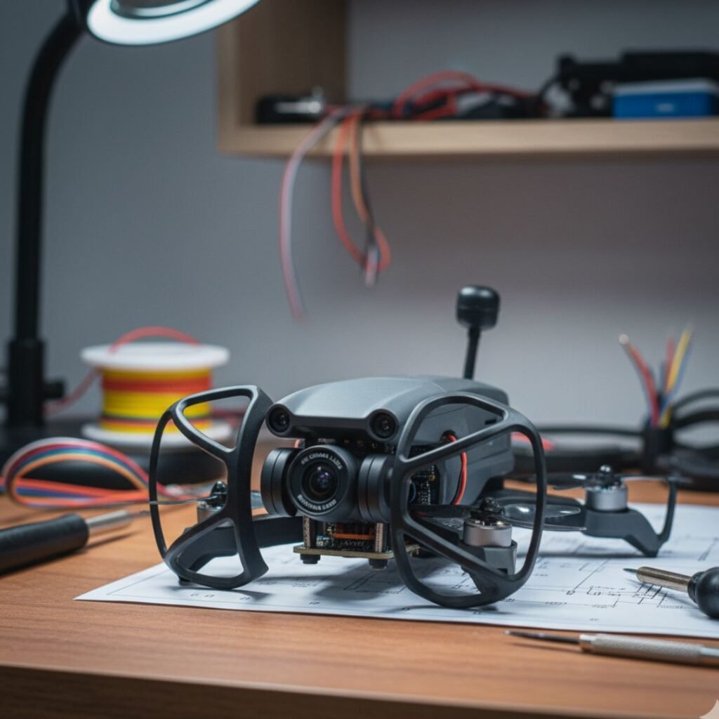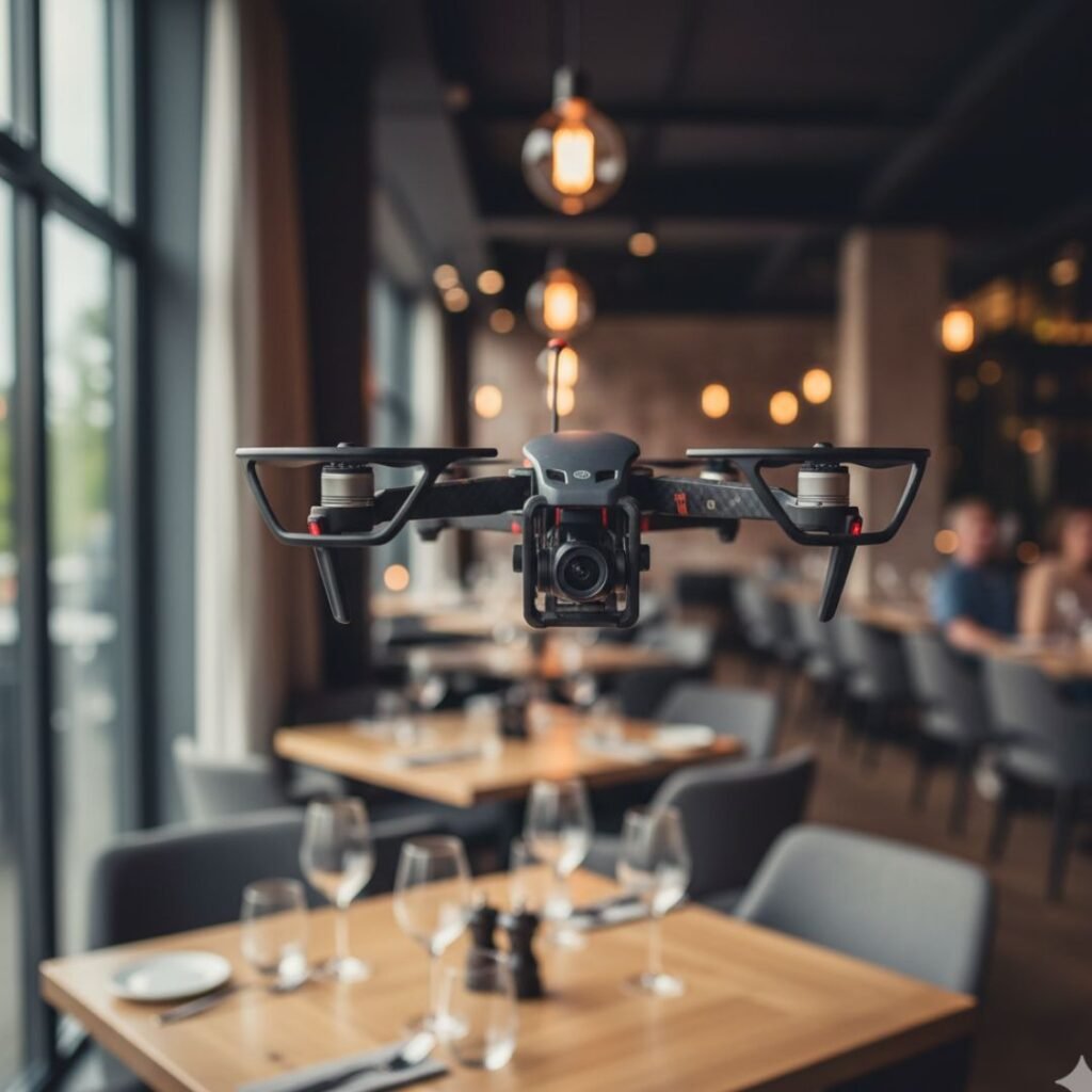Utilizamos drones FPV sub-250g con protectores de hélices, diseñados específicamente para volar de forma segura cerca de personas y objetos delicados en interiores.